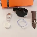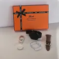 Kit smartwatch Microwear Ultra 4 Mini Pro com acabamento compacto e Oled . Inclui duas pulseiras intercambiáveis (couro marrom e silicone preto) para combinar com seu estilo. Carregador magnético incluso. Monitor de atividades, frequência cardíaca, notificações, além de modos esportivos. Perfeito para quem quer estilo, saúde e praticidade no dia a dia.